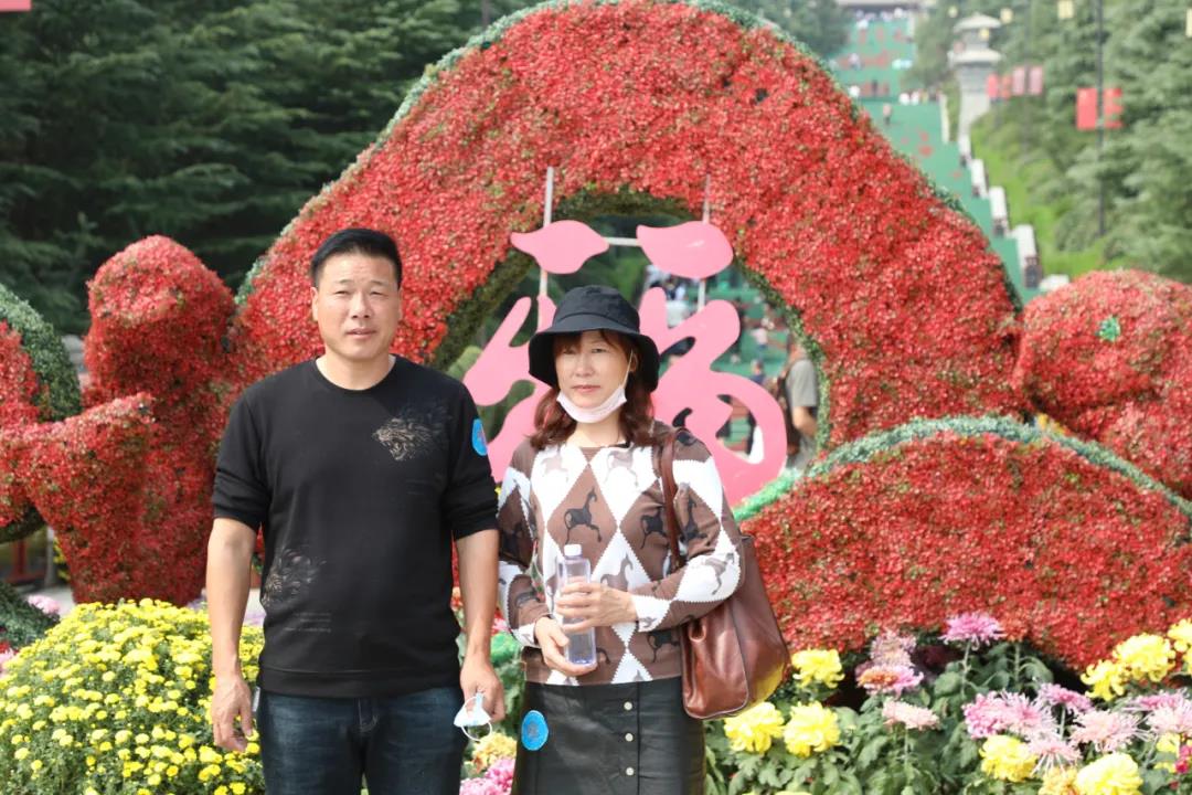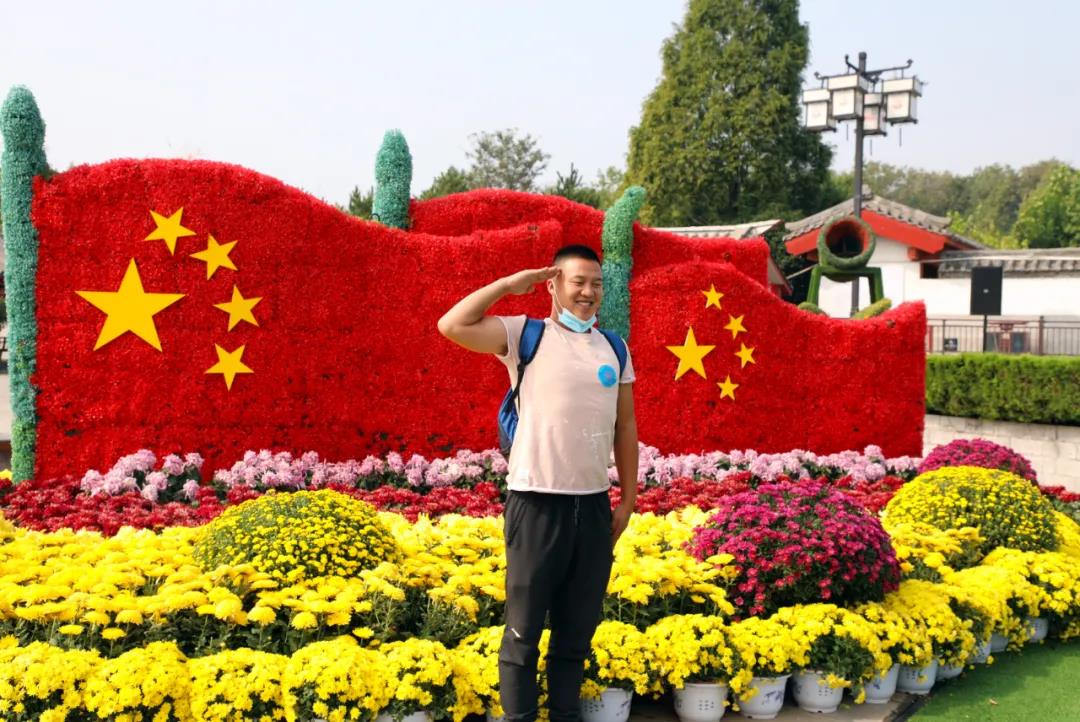 國慶節(jié)丨游客在菊花國旗造型前合影