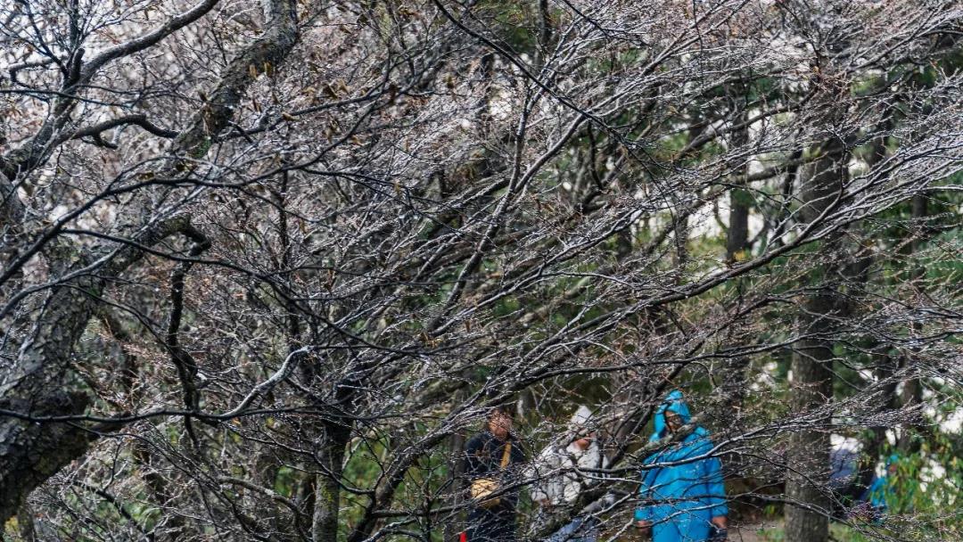 10月5日早上8點半左右,白云山室外溫度2℃,山頂更是飄起了片片雪花,一秒入冬。這也是近五年來,白云山第一次在“十一”假期就遇到“雪花飄零”的天氣。