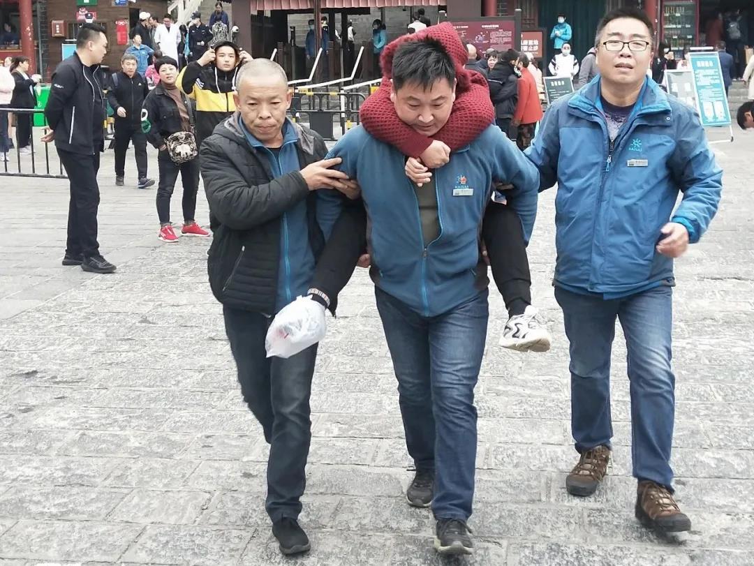 10月6日上午10時(shí)左右,天津游客孫先生在索道廣場不慎摔倒受傷,執(zhí)勤人員胡佳寧、王攀登、熊喜周等人迅速、及時(shí)的幫助和專業(yè)的救治受到游客的夸贊。