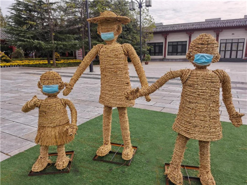 景區(qū)為稻草人帶上了口罩,提醒大家做好個人防護工作。