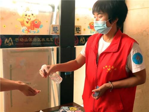 游客來到芒碭山,在入園以前需會通過紅外攝像進行體溫測量、出示健康碼、手部消毒等工作;景區(qū)還設置有大量引導人員,用以提醒廣大游客注意自我防范,包括與他人小于1米距離接觸時規(guī)范佩戴口罩、打噴嚏時注意遮擋等新冠防范知識科普內容;對服務游客的公共設施進行定時消殺,每間隔1小時進行集中處理。