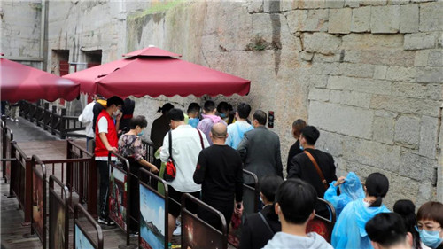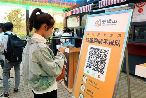 假期期間,芒碭山旅游區(qū)依舊以線上預約購票為主,在園區(qū)各處設置有購票二維碼和購票流程示意圖;線下購票窗口設置有保障購票秩序的圍欄和間距提醒標識,幫助游客安全有序的完成購票。