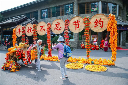 為了迎接國慶、中秋雙節(jié)到來,云臺山推出多彩熱鬧的系列活動。10月1日,來自全國各地的游客傳遞一面288平方米的巨幅國旗齊唱《歌唱祖國》,向祖國深情告白;40余種山貨的農(nóng)夫市集、熱鬧的民俗表演、特色的豐收體驗備受游客青睞,讓廣大游客不僅看得見山水,還可以體驗富有鄉(xiāng)村文化和田園趣味的民俗活動。據(jù)統(tǒng)計,首屆山貨豐收節(jié)共計“帶貨”四大懷藥、野山楂、山核桃等特產(chǎn)山貨50余萬元,山貨節(jié)為游客帶來全新游玩體驗的同時,也為景區(qū)周邊山區(qū)農(nóng)戶帶來真金白銀的收益,助力脫貧攻堅!