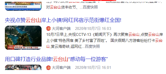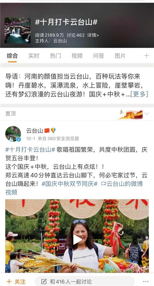 #十月打卡云臺山 微博、抖音話題火熱