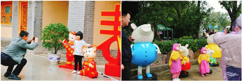 進入地坑院之前,除了花路,還有銅人不倒翁每天表演都忙得不停,朋友圈到處都是他們的合照。幸運轉轉賺,盲吃月餅等活動也進行的如火如荼。