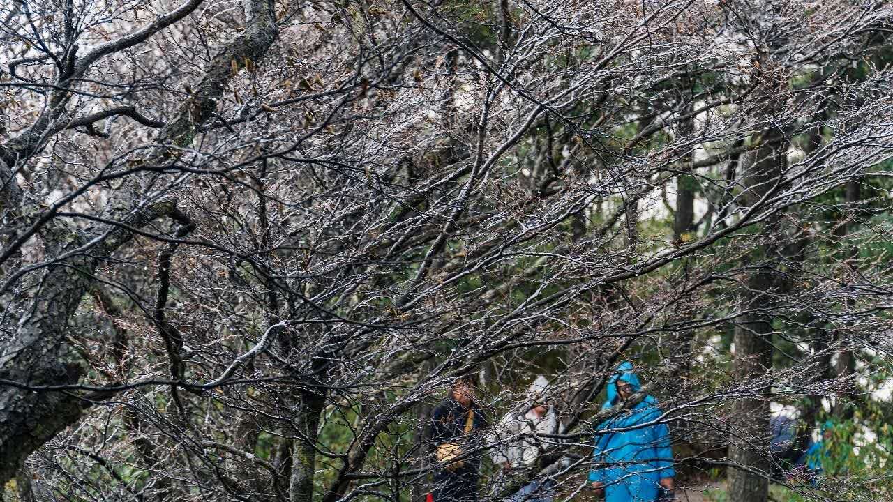 10月5日,洛陽白云山迎來2020年的第一場(chǎng)雪,這也是近五年來白云山第一次在十一假期出現(xiàn)飄雪天氣,山巒疊嶂云霧起伏中,紅葉白雪相映成趣,游客們裹著厚厚的衣服,開啟“賞秋+賞雪”模式。