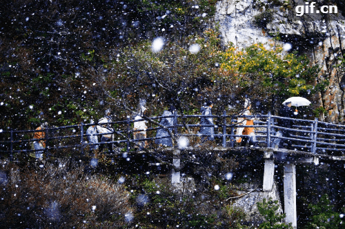 堯山今天下雪啦!2020入秋以來的第一場雪猝不及防地來了,白鵝絨般的雪花簌簌飄下,山上的游客們見狀都欣喜地掏出手機,與這從天而降的“驚喜”拍照留念,記錄這珍貴的一刻。