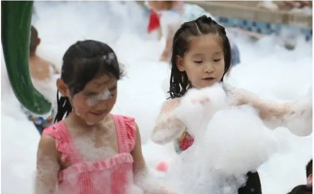 新奇好玩的泡泡浴活動,一片嗨翻了的熱鬧的場面,大小朋友們開心地在溫暖的泡泡浴中盡情歡笑。