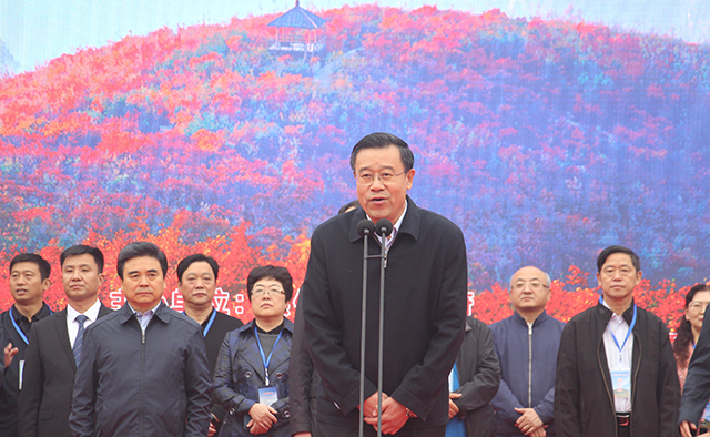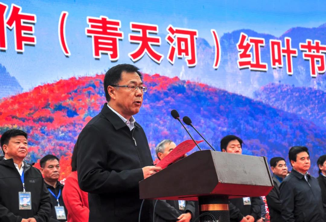 河南省文化和旅游廳黨組成員、副廳長(zhǎng)曲徑宣布“2020焦作(青天河)紅葉節(jié)開幕”