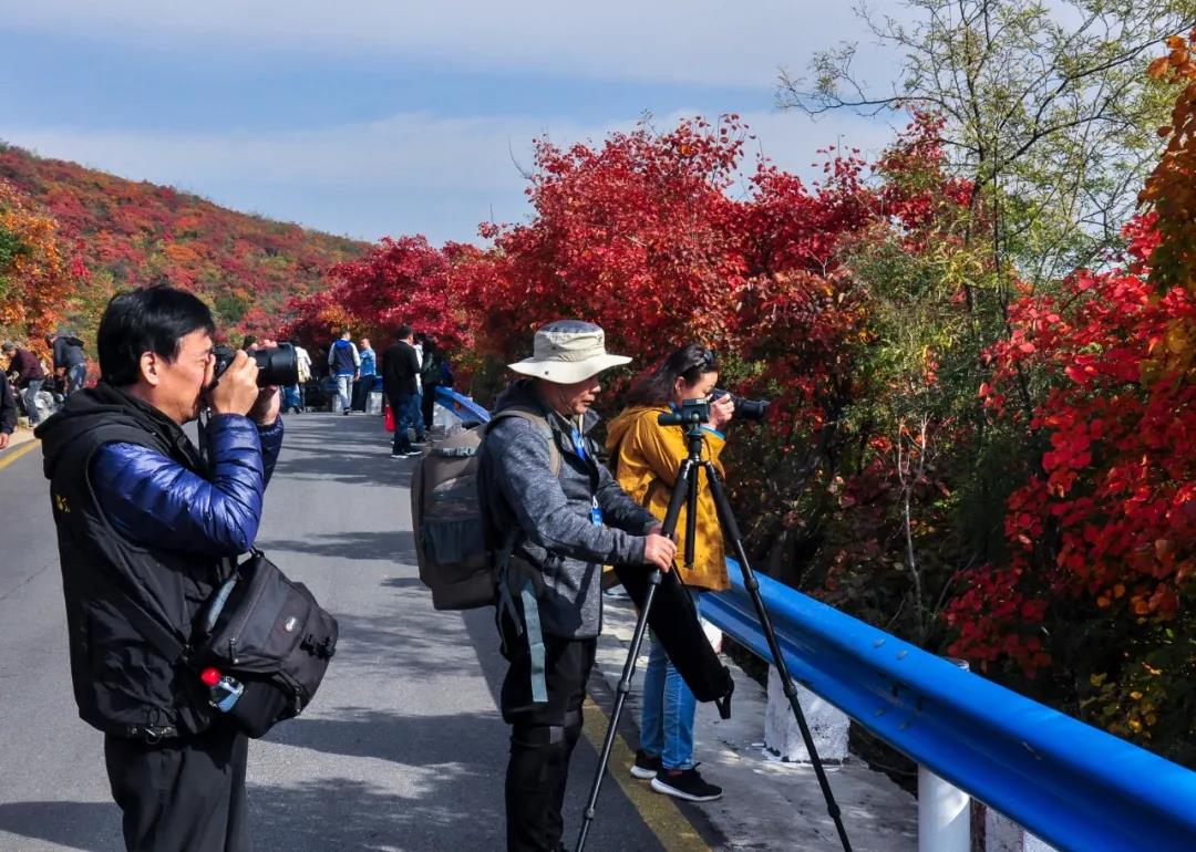 來自全國(guó)各地的攝影愛好者、短視頻達(dá)人、游客1萬余人走進(jìn)青天河共賞十萬畝紅葉海的震撼美景!