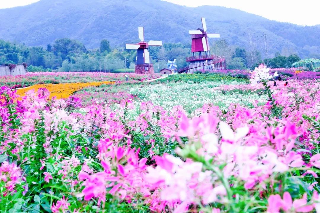 遠處的歐式大風車,點靚花海風光,告別車水馬龍和喧囂繁雜,悠然田園慢生活就此開啟。