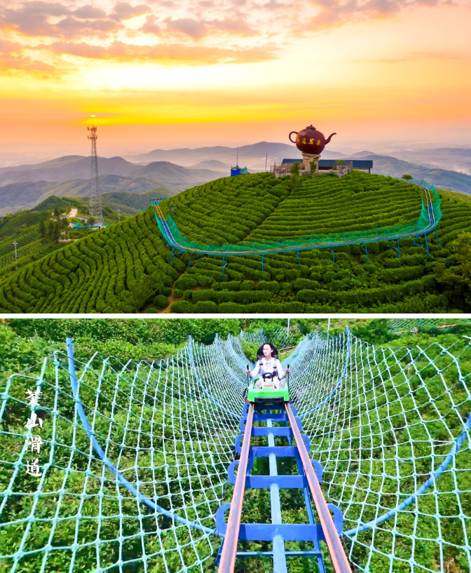 乘坐觀光滑道直達茶山之頂,舉目四望,山前梯田如鏡,村舍如在畫中,四周峰海山濤、云水煙雨的山水美景,如同一幅幅水墨畫展現(xiàn)在眼前。