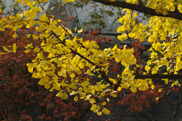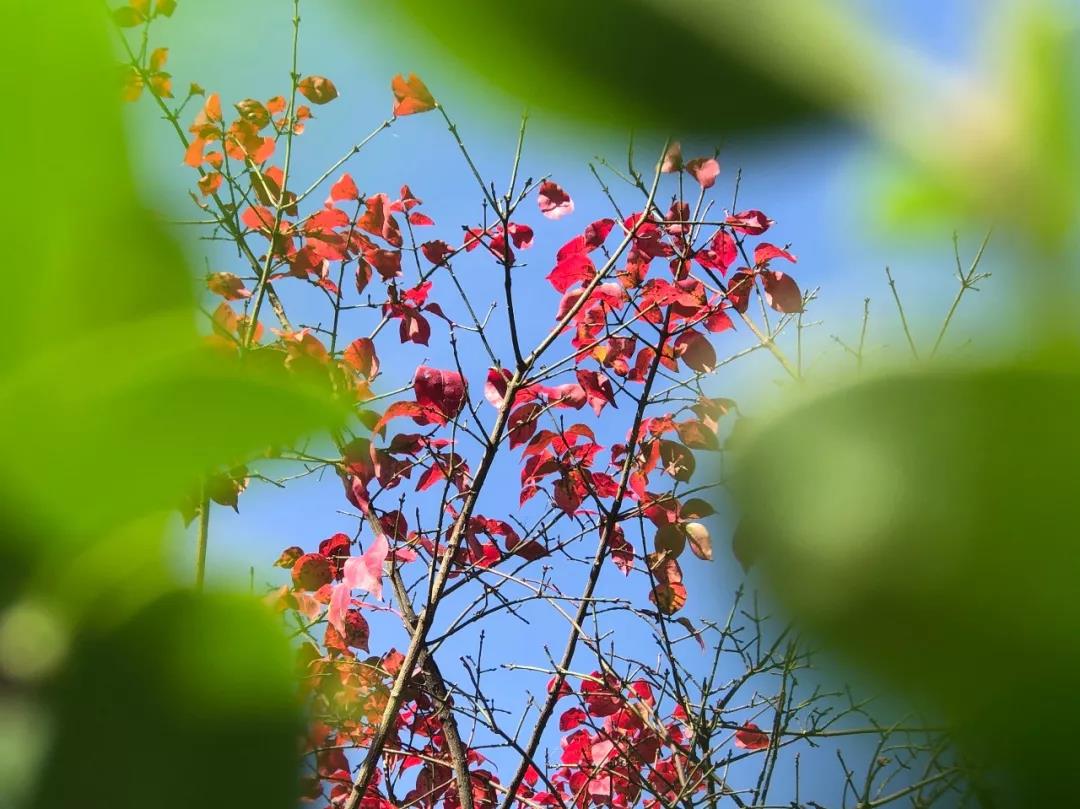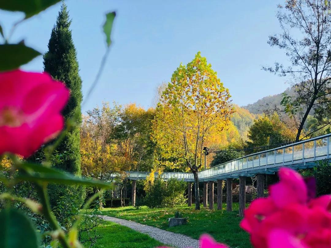 園區(qū)游覽步道旁銀杏、梧桐的葉片漸黃,秋已染上枝頭。抬頭眺望,秋色還掩映在步道外的每一處山巒之間。