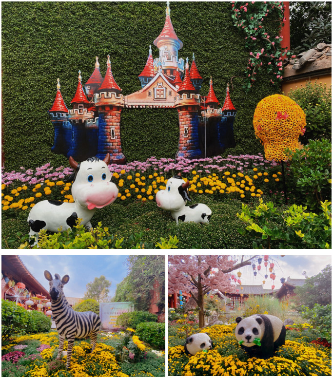 在南門處設(shè)置《曲徑通幽》小品景觀,給人一種神秘而又驚喜的感覺(jué),不由自主地走進(jìn)去,別有洞天;在丹臺(tái)宮西門道路一側(cè),設(shè)置花鏡互動(dòng),達(dá)到“人在花中過(guò),花在身上留”的效果;在中國(guó)館外,設(shè)置《戰(zhàn)疫斗士》場(chǎng)景,以許愿樹(shù)為背景,希望家國(guó)平安,生活美好,前景是與病毒戰(zhàn)斗的清明娃,花壇中的粉色樹(shù)位置為“吊打新冠病毒”。還有《魔幻花房》《汽車旅行》《花藝屏風(fēng)》《中秋佳境》《花語(yǔ)情緣》《青花瓷韻》,每一個(gè)都是你不可錯(cuò)過(guò)的拍照打卡點(diǎn)。