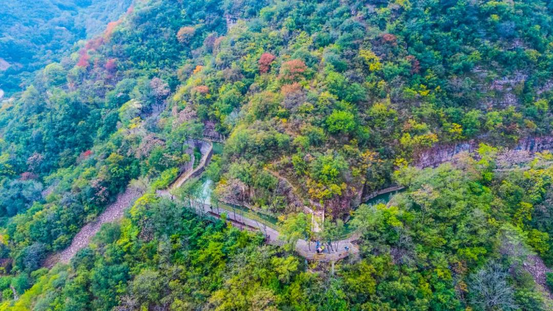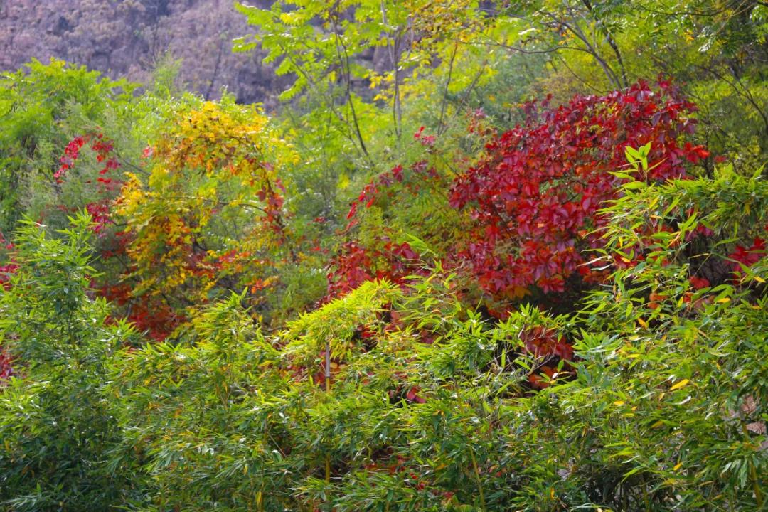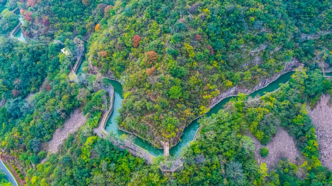 紅旗渠畔群峰秋色濃,漫山遍野呈現(xiàn)出五彩斑斕、層林盡染的絕美佳境。