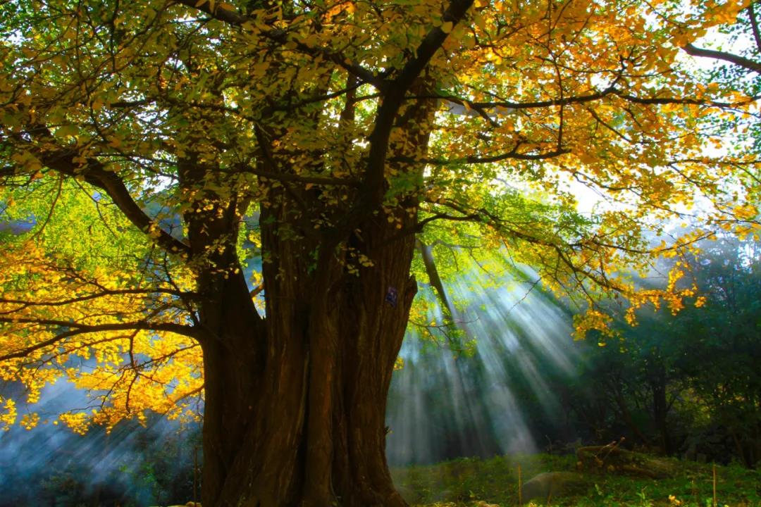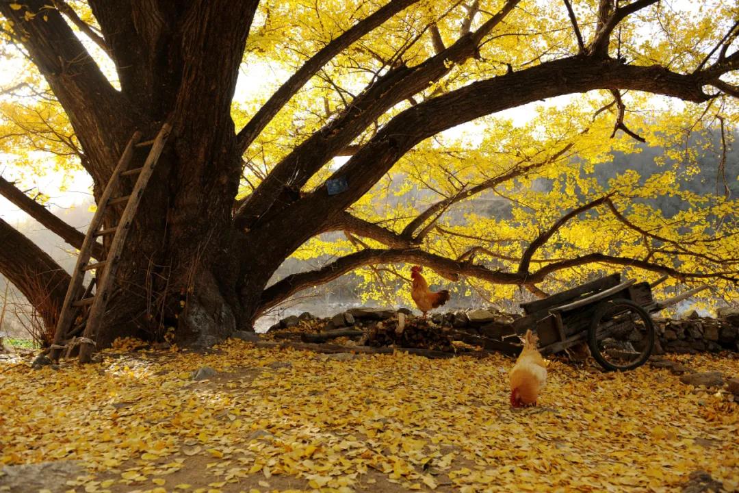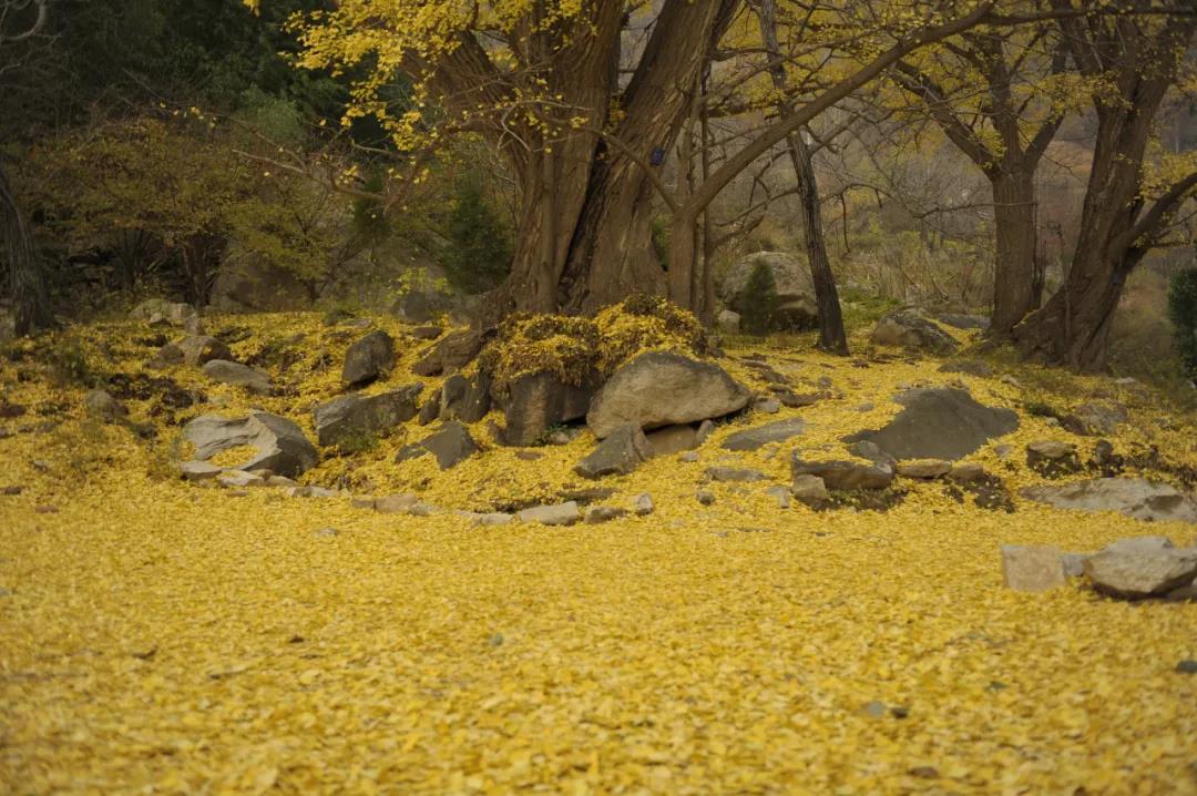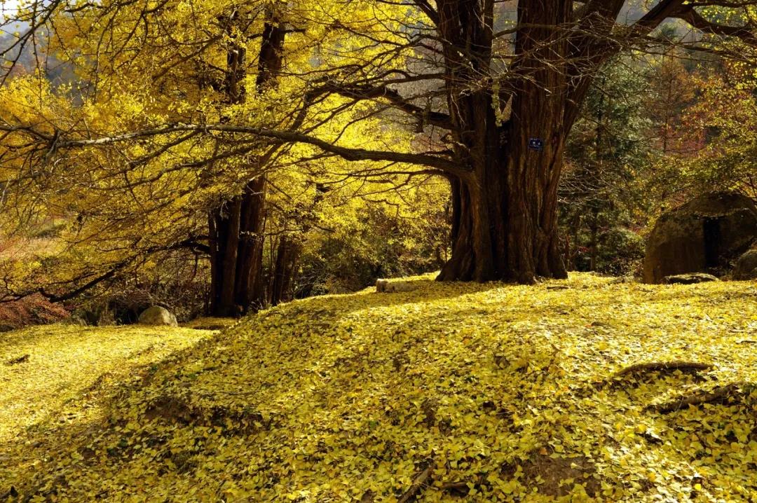 洛陽(yáng)白云山腳下的五馬寺銀杏樹(shù)林,樹(shù)齡之古老,分布之集中,實(shí)屬罕見(jiàn),具有很高的科研及觀賞價(jià)值。這里有30株樹(shù)齡超千年,最大樹(shù)齡2300多年的古銀杏林,400余株500年以上樹(shù)齡的銀杏群,它們冠大蔭濃,燦若披錦,銀杏樹(shù)冠總面積超15300平方米。10月下旬至11月上旬是銀杏的最佳觀賞季節(jié),秋風(fēng)一吹,銀杏葉緩慢飄落,落得滿(mǎn)地金黃,一幢幢黃泥土墻粼粼灰瓦的老屋,掩映在高飽和度的色彩世界里。