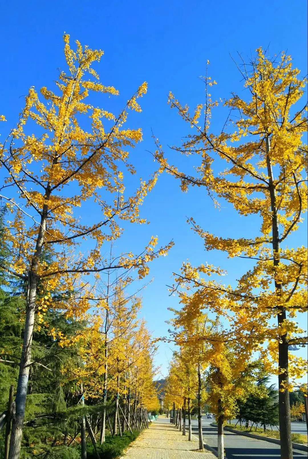 又見到滿地金色的銀杏葉,路旁的銀杏正在微風(fēng)中愜意的搖曳著那纖纖細(xì)腰,不斷有銀杏葉飄落下來。