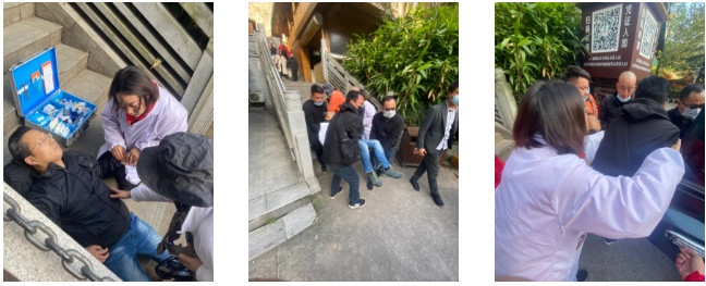 上午8點50分,剛剛救治完胃痙攣的游客,中天門票房打電話通知有游客暈倒,正好在中靈下站的景區(qū)醫(yī)護(hù)人員,沒有耽誤一分鐘,直接到病人跟前,對昏迷游客進(jìn)行檢查,檢查確定是心臟病突發(fā),已經(jīng)呈休克狀態(tài),緊急給游客吃了速效救心丸后,在周圍游客的幫助下抬上車,送往縣醫(yī)院急診科搶救。