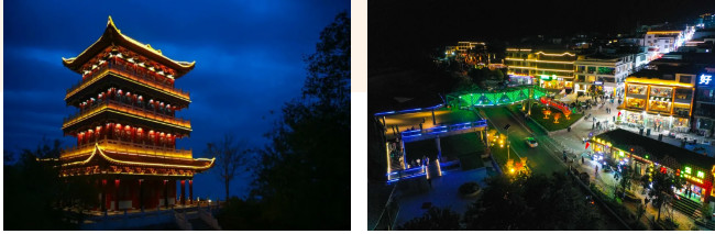 夜晚悄然而至,夢(mèng)幻浪漫的云臺(tái)山夜游,繁華熱鬧的岸上小鎮(zhèn),鑲嵌在太行山上的重陽(yáng)閣,星星點(diǎn)點(diǎn)璀璨的岸上人行觀景天橋,共同照亮云臺(tái)山絢麗多姿的夜。