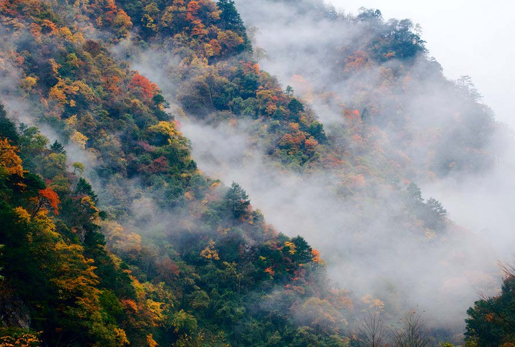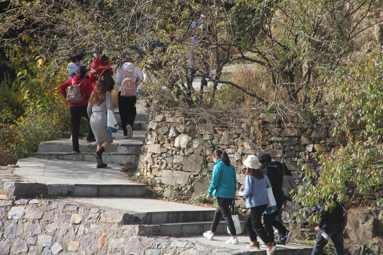 金秋時節(jié),拾階而上,秋季為這山泉涂染上點點的紅妝。山巒層層變化,或是金色,或是綠色,抑或透漏出點點紅色,斑駁色彩,才是這個秋季的色調(diào)。