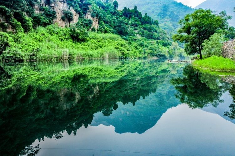 來到山腳下,映入眼簾的便是一池碧綠,因當年殷紂王在此取水釀酒,名曰:酒泉湖。湖水由天然山泉匯聚而成,泉水清冽甘甜,在寂靜的山谷中,宛如一塊寶玉。