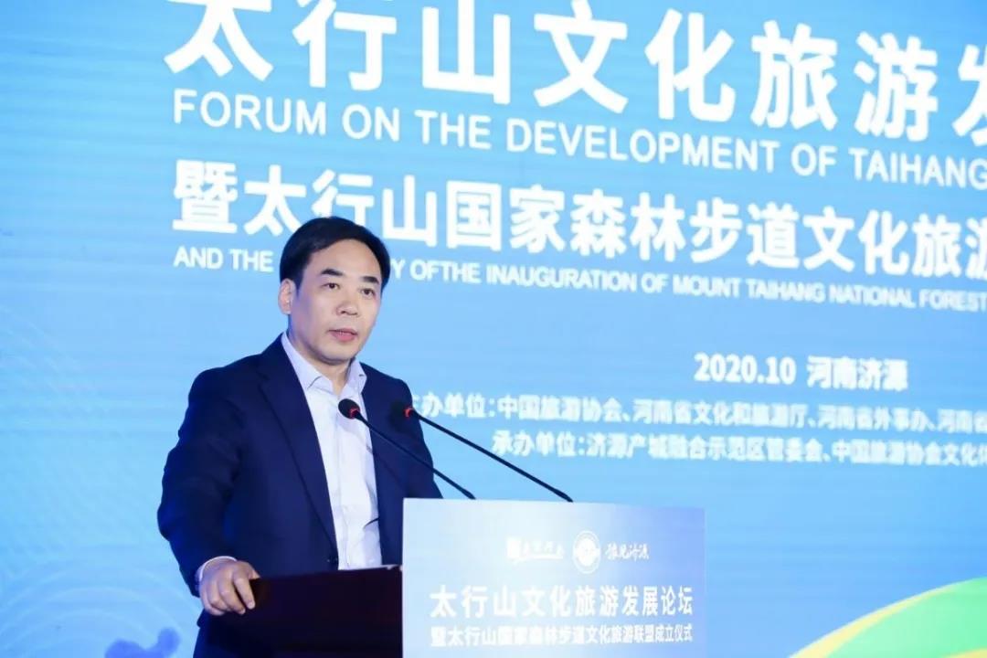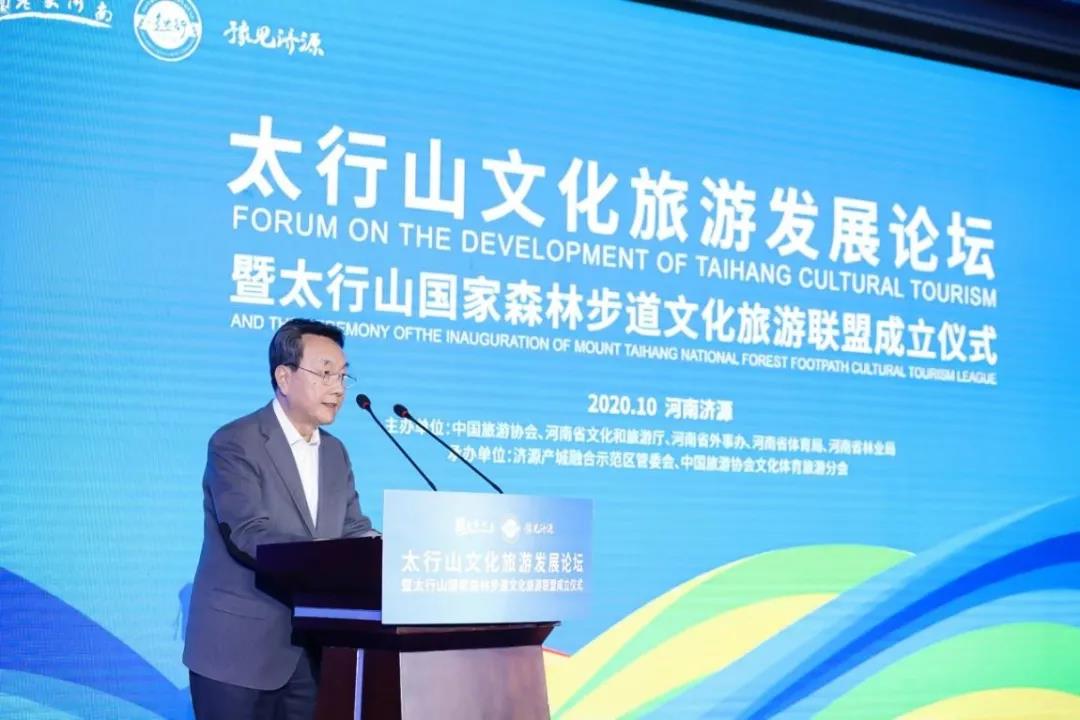 山脈相連,巍巍太行山,貫穿北京、河北、山西、河南。作為2020首屆穿越壯美太行國(guó)際徒步大會(huì)的重要組成部分,10月24日下午,以聚焦太行山未來(lái)旅游發(fā)展為主題,太行山文化旅游發(fā)展論壇暨太行山國(guó)家森林步道文化旅游聯(lián)盟成立儀式,在太行山國(guó)家森林步道南起點(diǎn)濟(jì)源舉行。來(lái)自北京、河北、山西、河南三省一市文化和旅游部門負(fù)責(zé)人以及國(guó)內(nèi)外文化、體育、旅游、營(yíng)銷等相關(guān)領(lǐng)域?qū)<覍W(xué)者,聚集一堂,群策群力,共同探索太行山文化旅游融合發(fā)展路徑,推進(jìn)“旅游+”,構(gòu)建太行山文化旅游共建共享新格局。