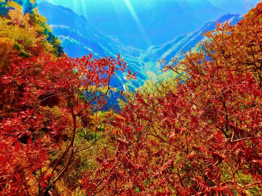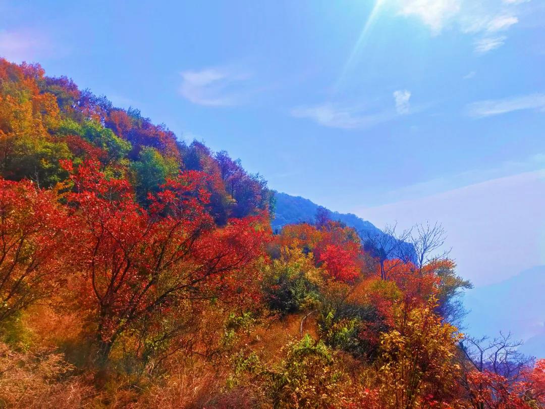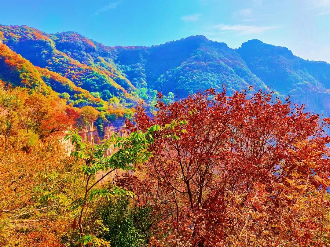 金秋十月,秋染新鄉(xiāng)南太行,紅葉最佳觀賞期,滿山紅遍,層林盡染,到處一派迷人秋色。新鄉(xiāng)南太行天界山景區(qū)也被染成了一個色彩斑斕的世界。