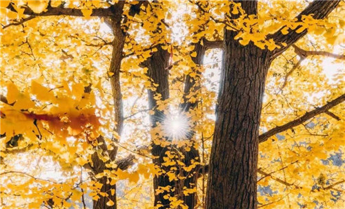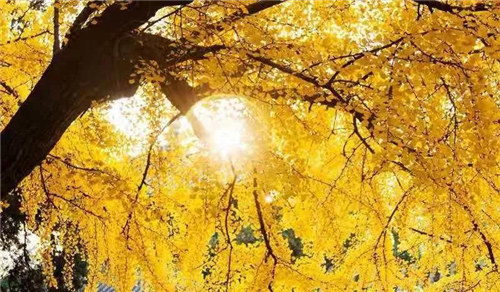 當(dāng)初冬遇上暖陽,金黃的銀杏葉在陽光的照射下,閃閃發(fā)光,燦爛無比。