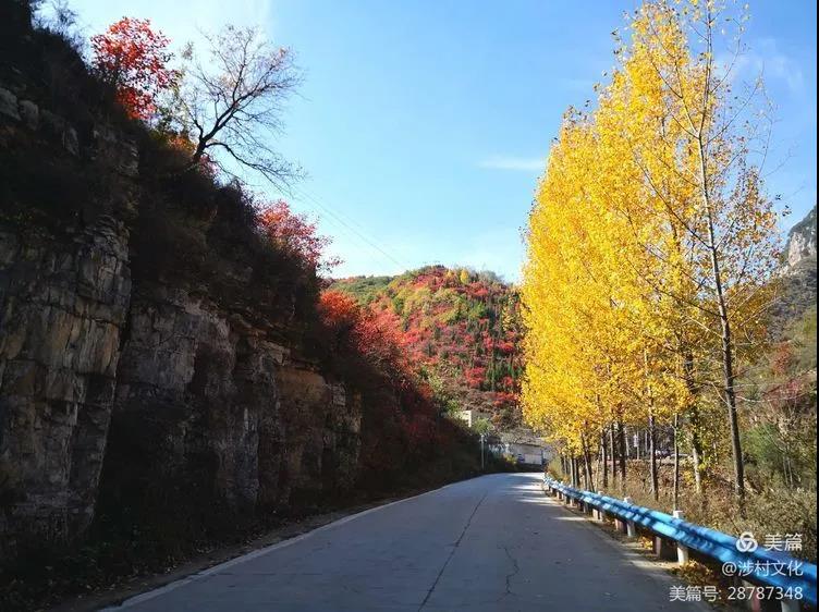 深秋時節(jié)的涉村,有一簇簇,一片片的紅葉,如堆堆篝火,似團(tuán)團(tuán)云霞,熱烈奔放、斑斕悅目。 楊家寨、滴水溝山巒起伏、層林盡染;洪河、三峪河谷長景深、流水潺潺;五指嶺云海翻騰、手可摘星辰。