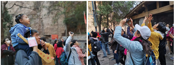 游覽中,游客們被紅旗渠紀(jì)念館珍藏的黑白照片和影像資料深深震撼,零距離感受“人工天河”的宏偉浩大,感悟紅旗渠精神。