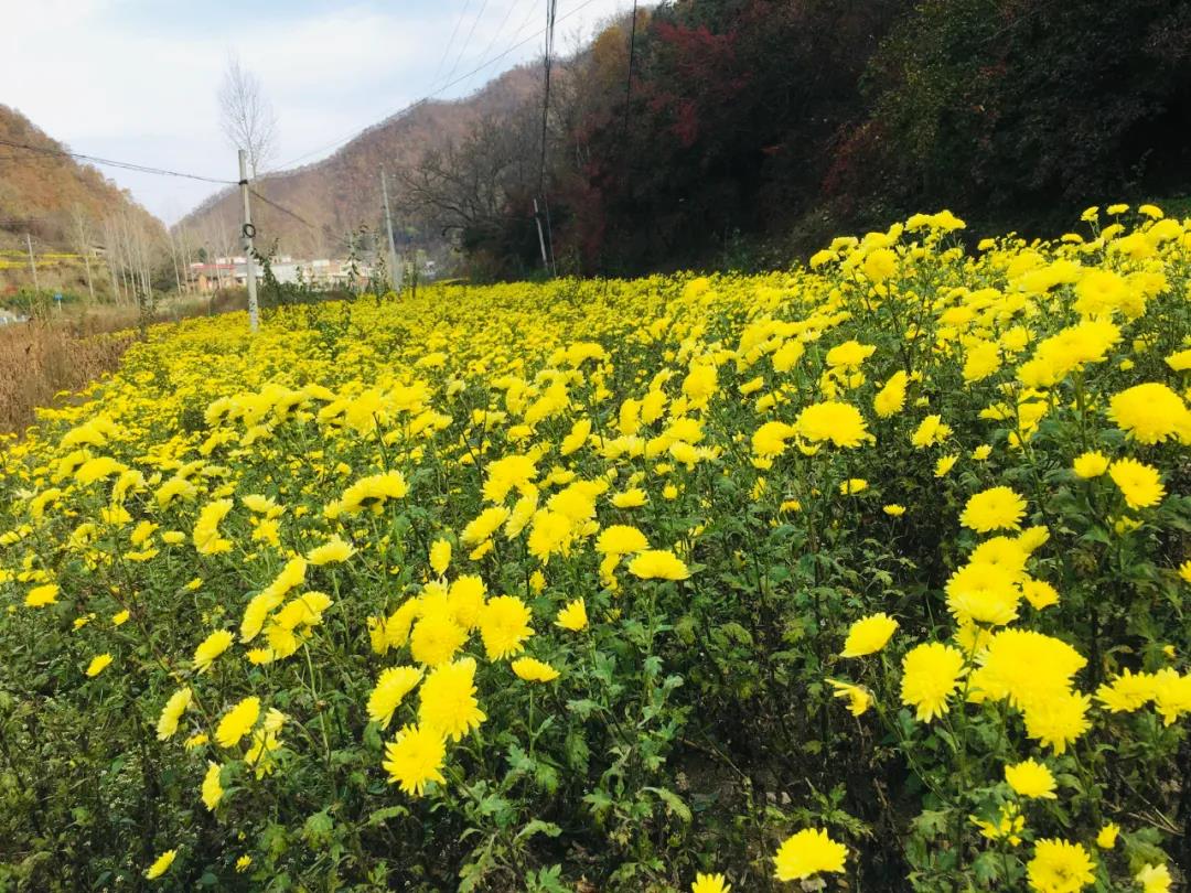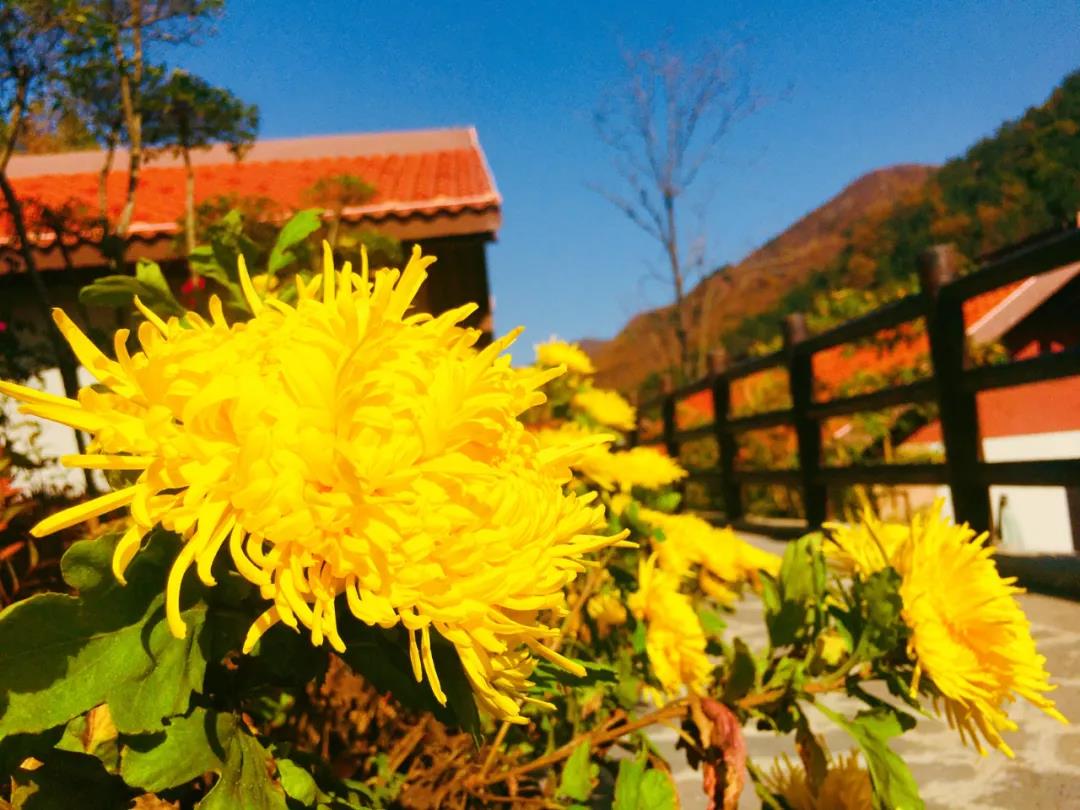 片片金黃的菊花地,在夕陽的映襯下,散發(fā)出迷人的氣息,從高山石縫中自然涌出的溫泉水,則給當地的居民以及慕名而來的游人帶來了暖意!