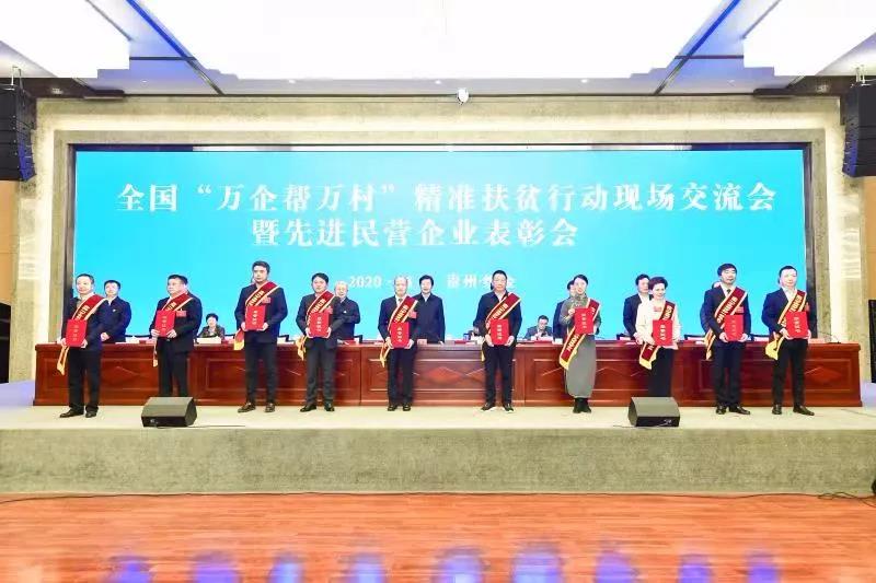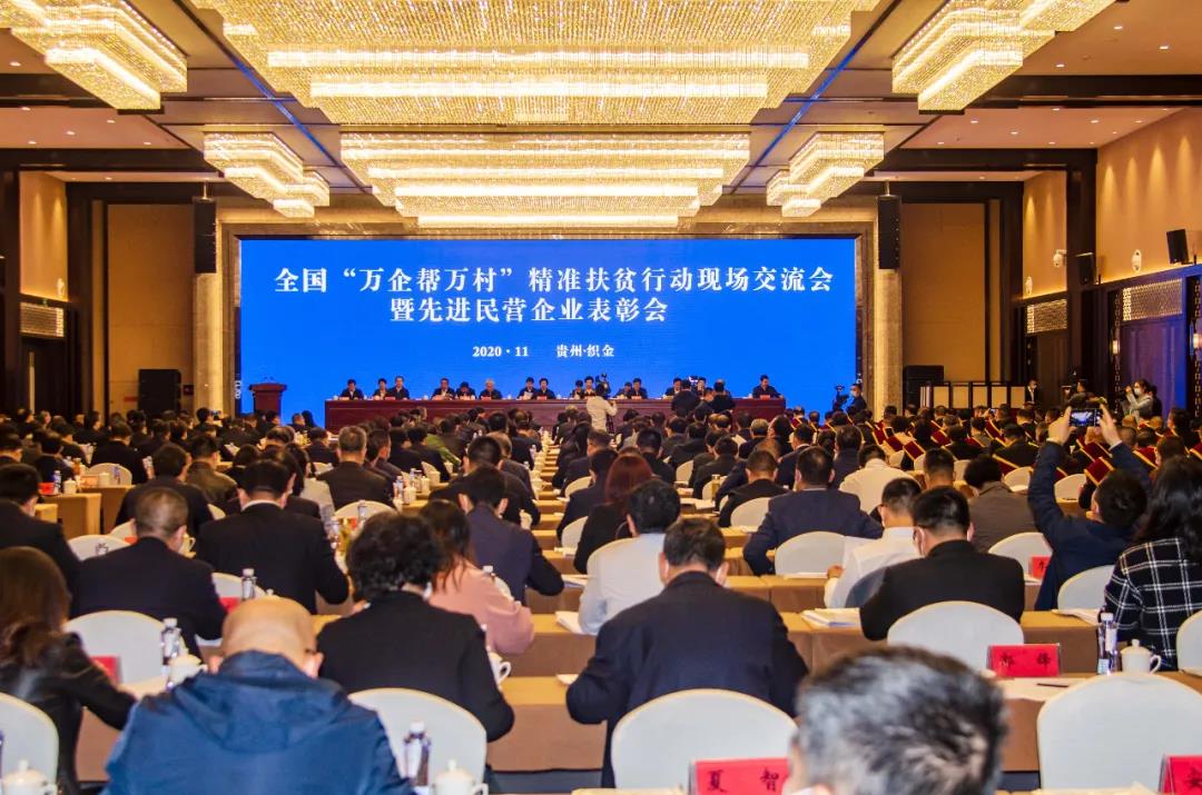 2020年11月12日上午,全國(guó)“萬(wàn)企幫萬(wàn)村”精準(zhǔn)扶貧行動(dòng)現(xiàn)場(chǎng)交流會(huì)暨先進(jìn)民營(yíng)企業(yè)表彰會(huì)在貴州省畢節(jié)市織金縣召開(kāi)。會(huì)議傳達(dá)了中共中央政治局常委、全國(guó)政協(xié)主席汪洋對(duì)“萬(wàn)企幫萬(wàn)村”行動(dòng)的指示,傳達(dá)了中共中央政治局委員、國(guó)務(wù)院副總理胡春華和中共中央書(shū)記處書(shū)記、中央統(tǒng)戰(zhàn)部部長(zhǎng)尤權(quán)對(duì)“萬(wàn)企幫萬(wàn)村”行動(dòng)的批示。全國(guó)政協(xié)副主席、全國(guó)工商聯(lián)主席高云龍出席會(huì)議并講話。貴州省委副書(shū)記、省長(zhǎng)諶貽琴致辭。國(guó)務(wù)院扶貧辦主任劉永富、中央統(tǒng)戰(zhàn)部副部長(zhǎng)、全國(guó)工商聯(lián)黨組書(shū)記、常務(wù)副主席、中國(guó)光彩會(huì)會(huì)長(zhǎng)徐樂(lè)江發(fā)表講話,全國(guó)工商聯(lián)副主席、中國(guó)光彩會(huì)副會(huì)長(zhǎng)謝經(jīng)榮主持了會(huì)議。