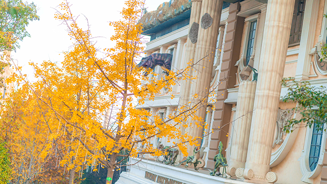 初冬的方特歡樂世界,被層層疊疊、深深淺淺的黃葉,花壇里點(diǎn)綴的火紅的果子,金色的暖陽……勾勒成一個(gè)如夢似幻的夢話世界。