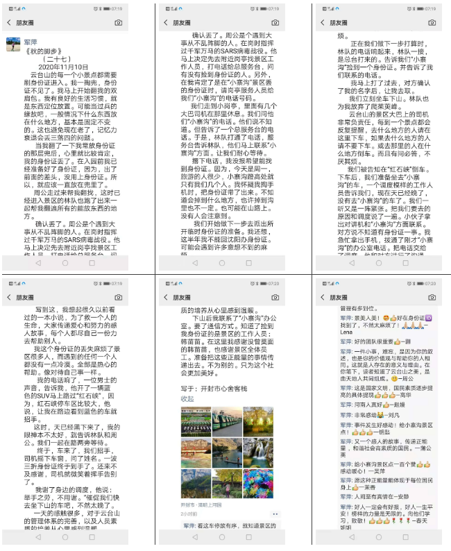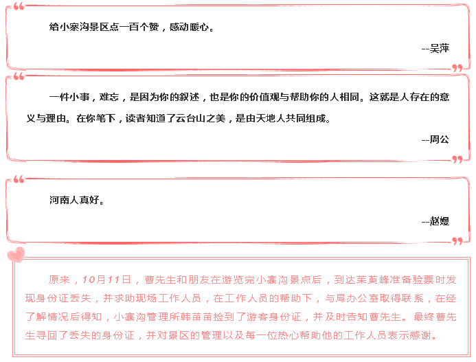 在朋友圈發(fā)布了一段在云臺山景區(qū)內(nèi)的暖心經(jīng)歷