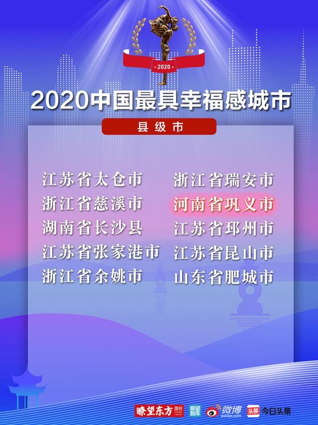 一年一度,遇見幸福。 11月18日,由新華社《瞭望東方周刊》與瞭望智庫共同主辦的“2020中國幸福城市論壇”暨第十四屆中國最具幸福感城市調(diào)查推選活動在杭州舉行,鄭州市、鞏義市雙雙獲評“2020中國最具幸福感城市”。