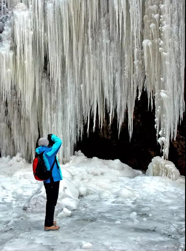 一條條如百練般的冰瀑豁然橫亙?cè)谘矍啊?/p>
