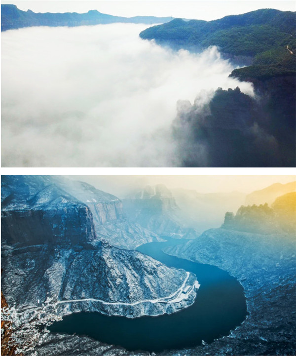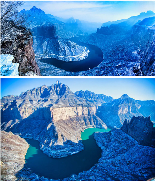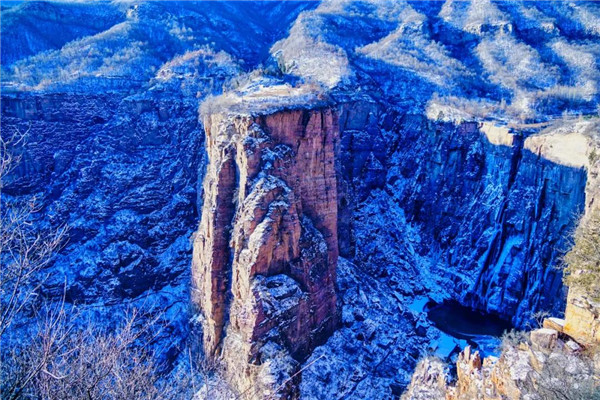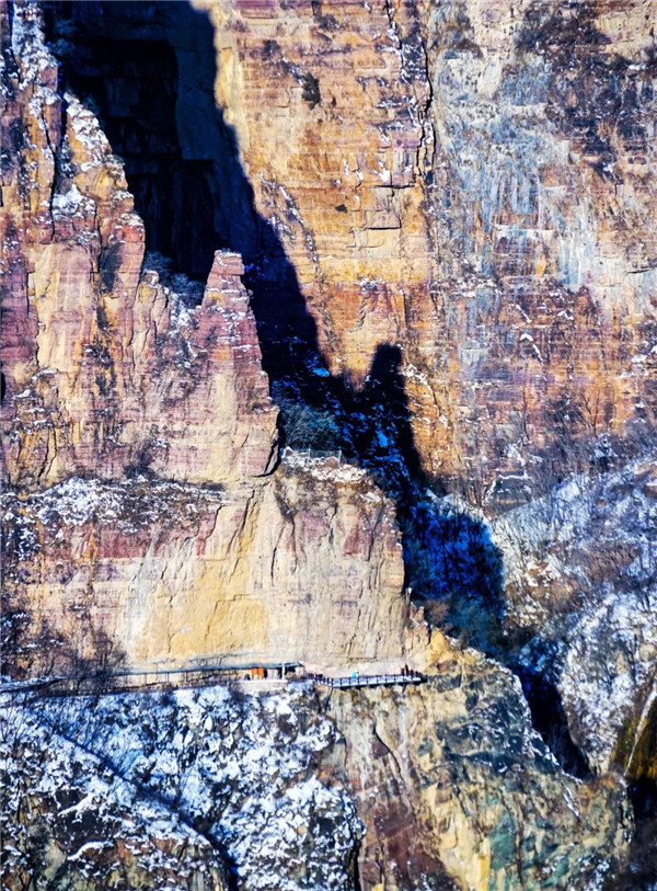 雪花飄落,遠觀山壁就好像漸漸的穿上了一件白色的棉襖,偶爾沒有被雪花覆蓋的地方,就像是露出衣服的皮膚,可能這是上天給太行山脈披上的新衣,為了迎接新的一年。