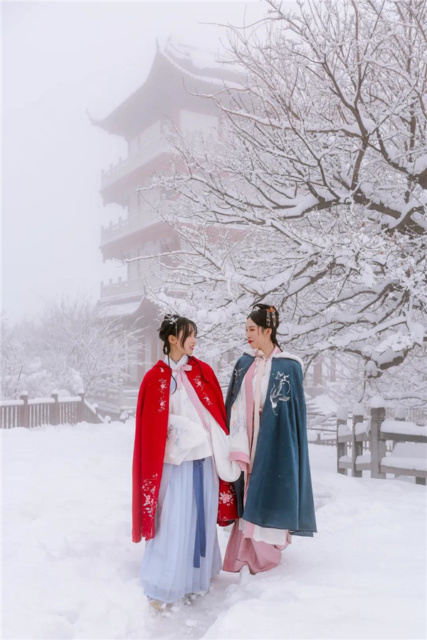 白雪鑲紅墻,碎碎墜瓊花。漫山的樹枝上拖著蓬松松,毛茸茸的霧凇,一陣風(fēng)過,玉屑似的雪末隨風(fēng)飄落,宛如雪下。