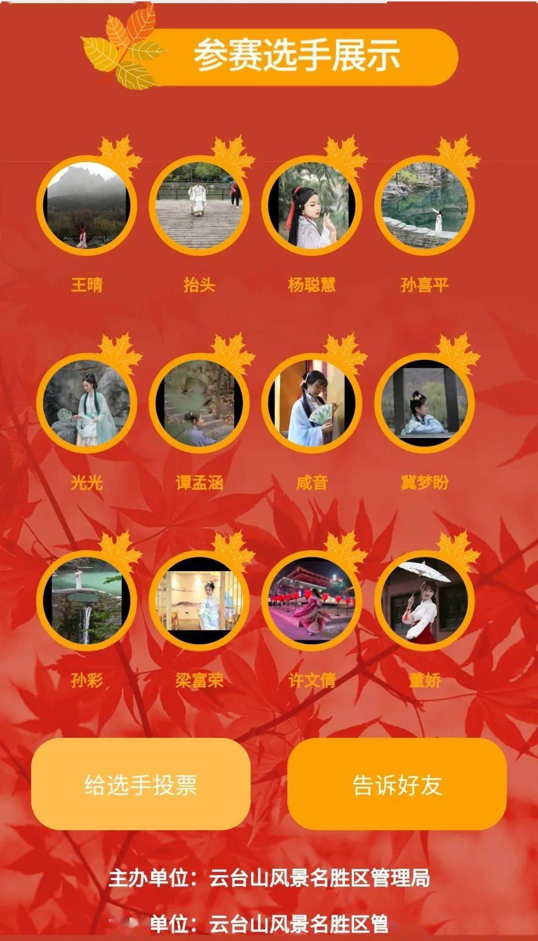 歷時(shí)44天,穿越秋冬,從漫山紅葉到白雪皚皚,云臺(tái)山紅葉國(guó)潮文化節(jié)·漢服模特大賽,線上投票將于11月30日晚20:00正式關(guān)閉。