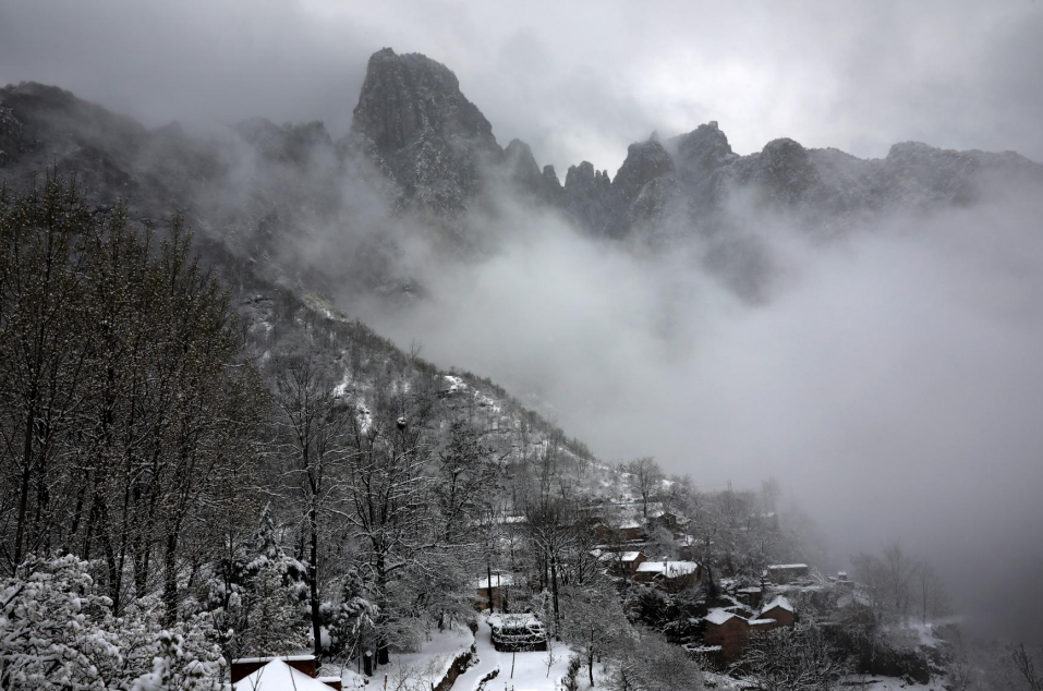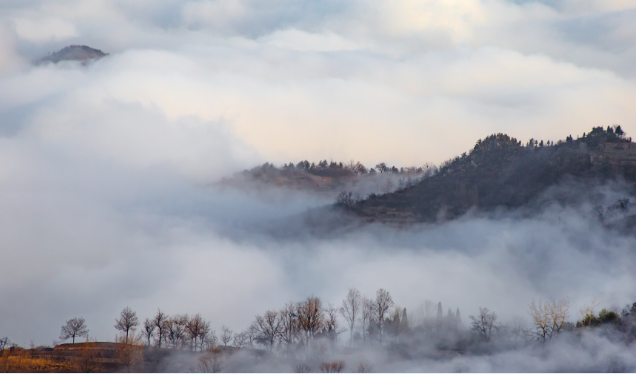 站在太行天路上,景色也跟著壯闊起來(lái),黑的山,白的雪,在蒸騰的霧色里隱約可見(jiàn),一幅幅水墨畫(huà)映入眼簾!