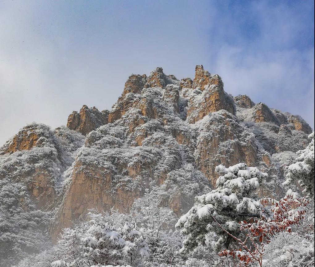 隨著海拔的升高,雪慢慢厚重起來(lái),像一個(gè)厚重的棉花毛毯,把草木萬(wàn)物都裹在一個(gè)粉妝玉砌的世界里。