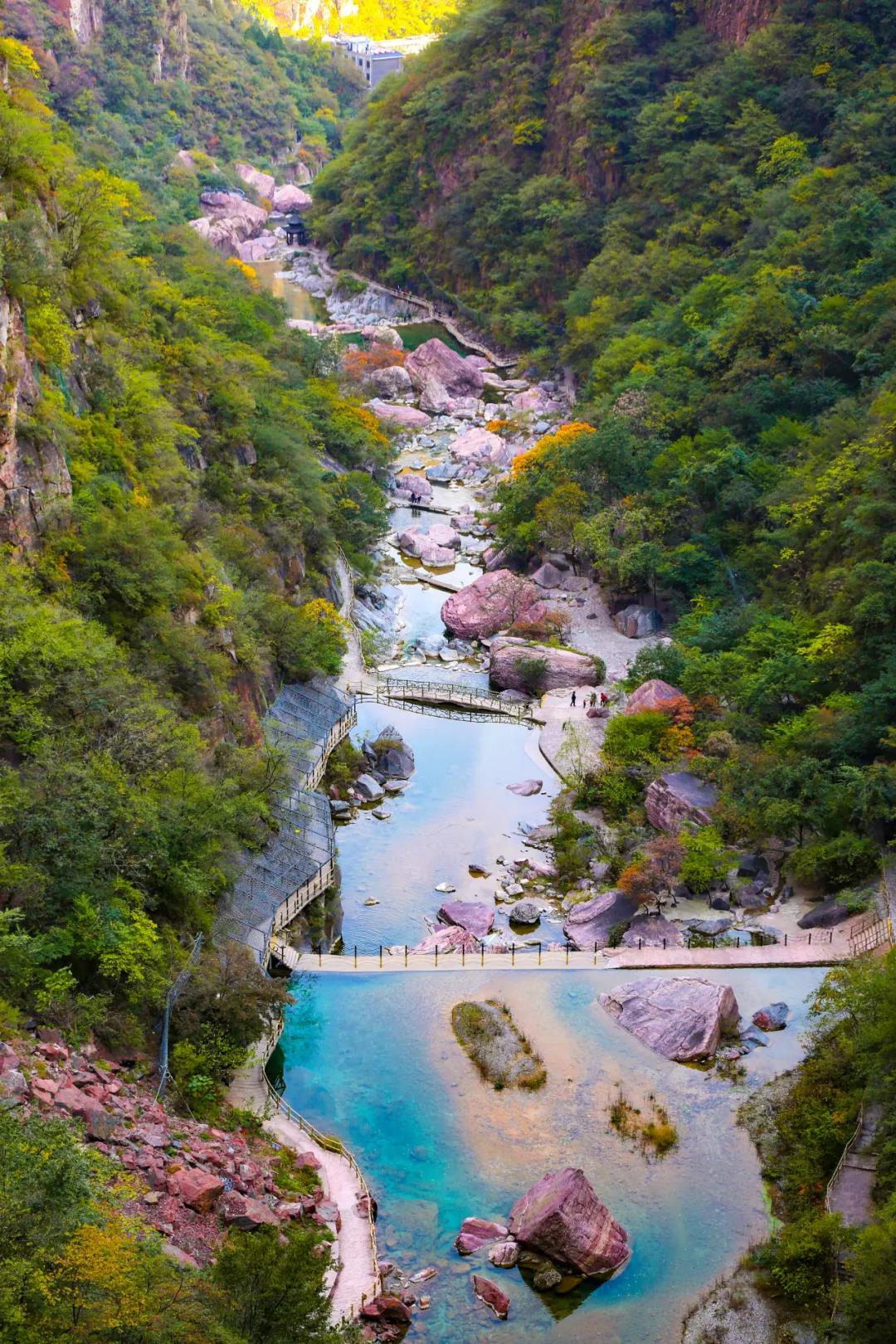 有著集南北方氣質(zhì)于一身的險(xiǎn)峻和秀美,以及獨(dú)有的歷史文化底蘊(yùn)的寶泉峽谷。從空中俯瞰,寶泉峽谷像一條橫臥深谷的巨龍,峽谷兩岸山勢(shì)陡峭、谷內(nèi)溪水蜿蜒、流水淙淙,兩岸奇峰怪石、綠樹藍(lán)天,繪就出了雄奇壯麗的山水畫卷。