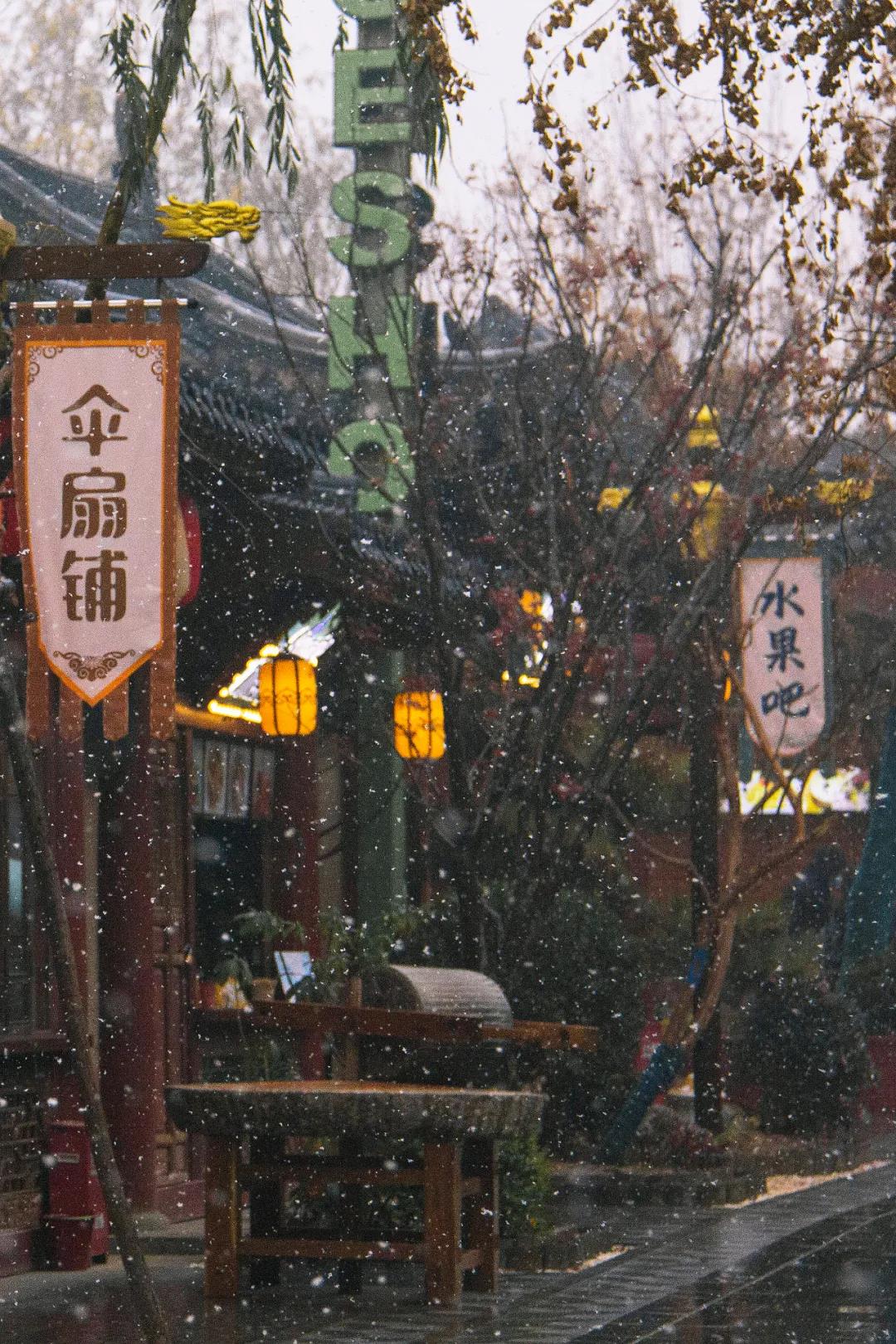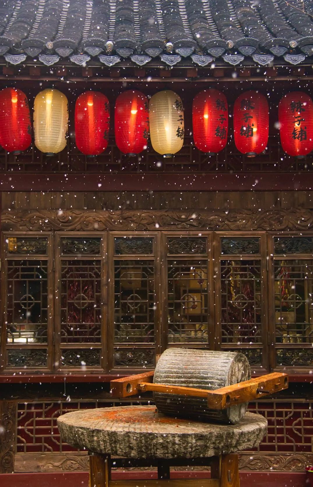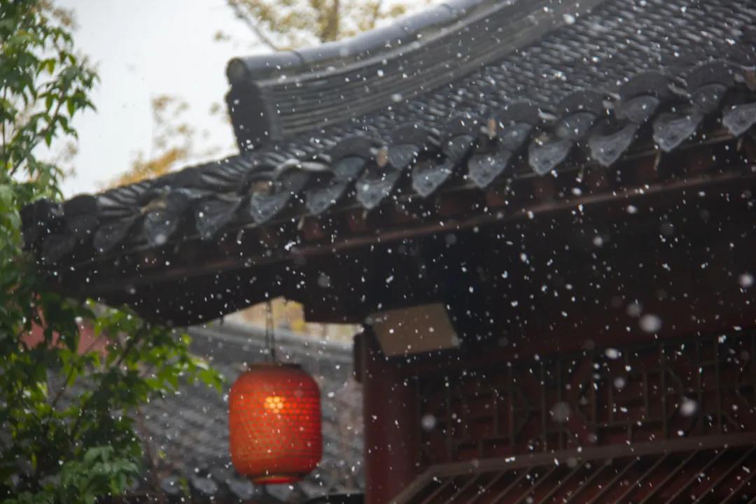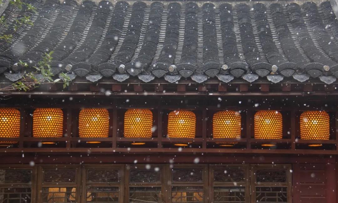 飛雪中的碧瓦飛甍、雕梁畫棟