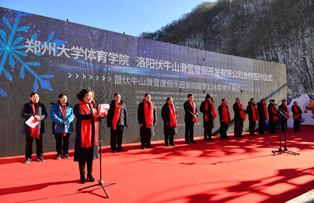 12月5日,鄭州大學(xué)體育學(xué)院與伏牛山滑雪度假開發(fā)有限公司合作簽約授牌。伏牛山滑雪度假樂園第四屆夢幻冰雪季盛大開幕!