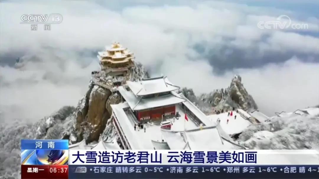 11月30日,CCTV-2財(cái)經(jīng)頻道《正點(diǎn)財(cái)經(jīng)》、CCTV-4中文國(guó)際頻道《中國(guó)新聞》、CCTV-13新聞?lì)l道《朝聞天下》欄目相繼報(bào)道,播出新聞“河南:大雪造訪老君山 云海雪景美如畫(huà)”。據(jù)了解,當(dāng)天一共播放6次,這是繼今年10月29日,央視報(bào)道老君山秋景紅葉后,又一次把目光聚焦在了老君山上。