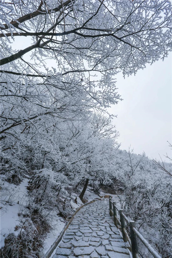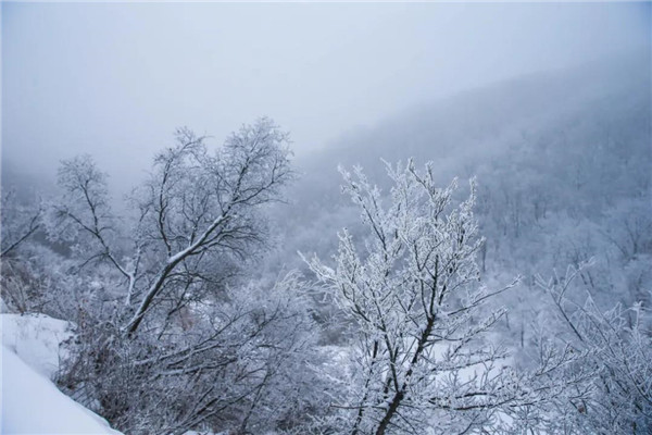 萬畝森林雪樹銀花,千姿百態(tài)猶如仙境,被霧凇包裹的草木,就像無數(shù)潔白的花朵開在山間。
