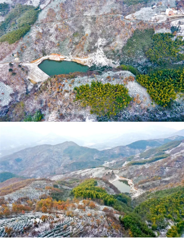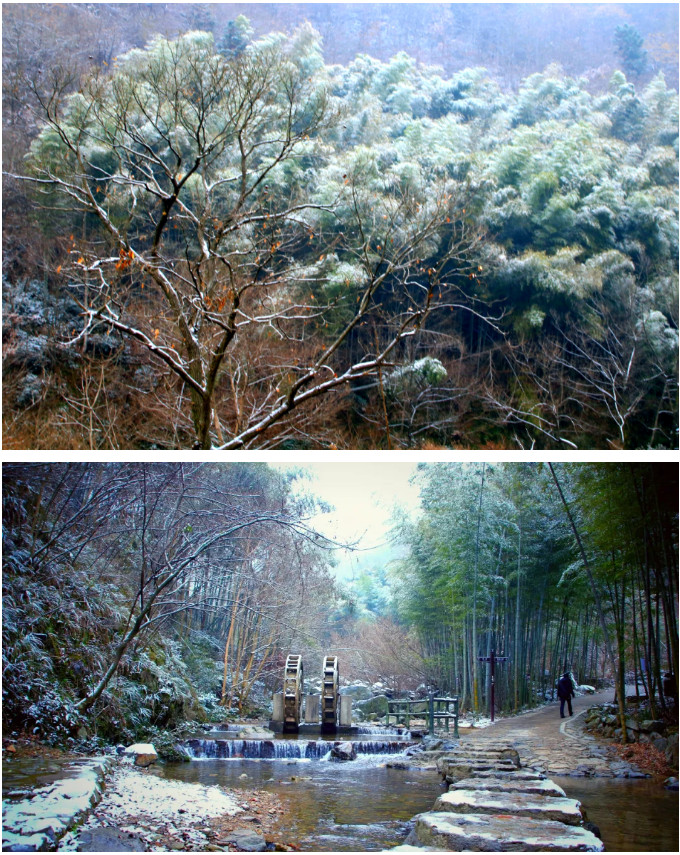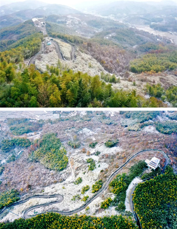浪漫的初雪訴說著茶山竹海冬日獨有的美麗,潔白的世界映得竹林格外亮麗。