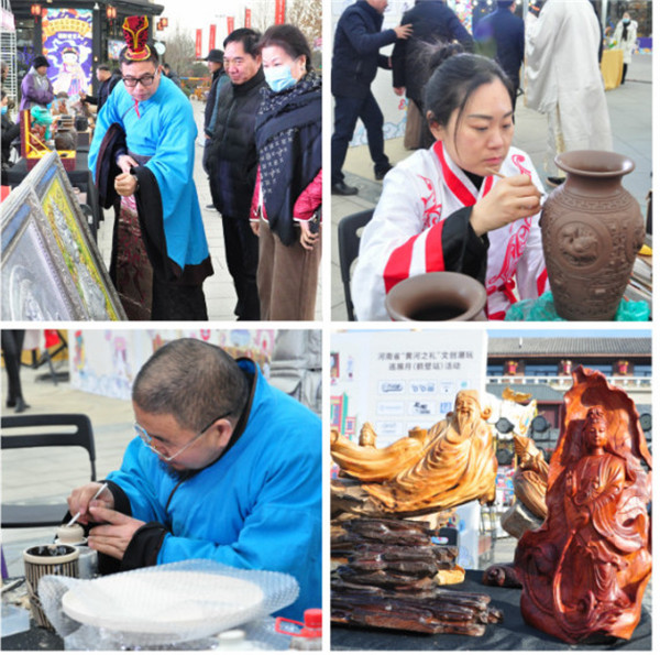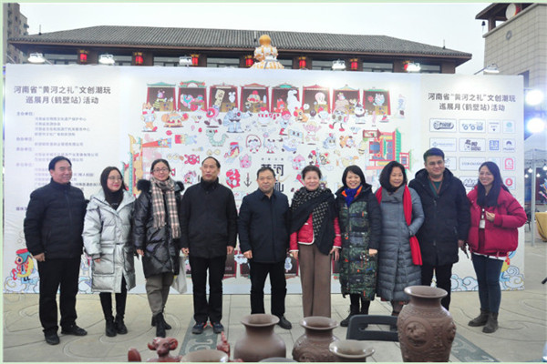 12月19日,河南省“黃河之禮”文創(chuàng)潮玩巡展月活動來到鶴壁市朝歌里,這是繼平頂山市鷹城廣場站、開封市七盛角站之后的第三場活動。鶴壁市文化廣電和旅游局黨組書記、局長王憲才、副局長王中文等與眾多市民一起參與其中,見證了現(xiàn)場非遺手工、潮流玩具,華服巡游走秀,投壺涂鴉互動等眾多精彩活動。