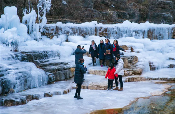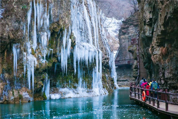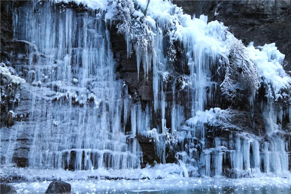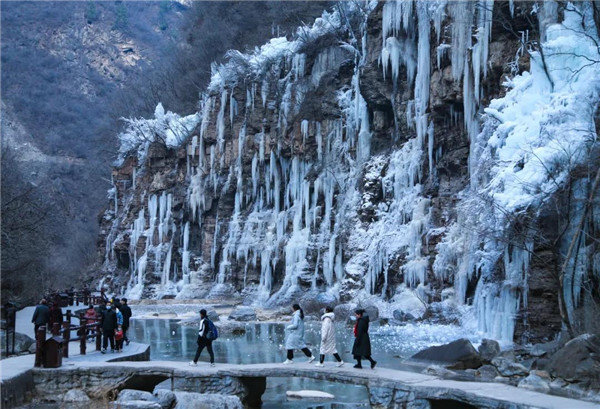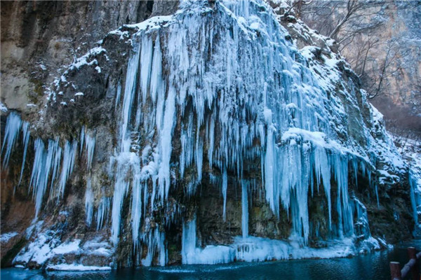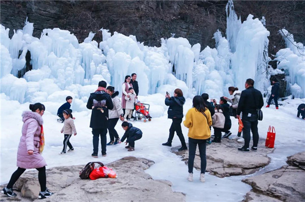流動(dòng)的泉水沿山體凝結(jié)、定格,懸崖峭壁間形成千姿百態(tài)的冰掛,放眼望去,層層疊疊,美不勝收,八方游客慕“冰”而來(lái),只為一睹這攝人心魄的冰瀑奇觀。