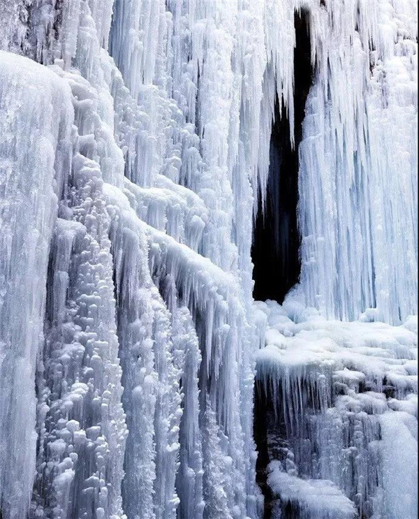 晶瑩的冰花,瑰麗奪目,疊疊冰筍,玲瓏剔透,一簇簇,一團(tuán)團(tuán),垂簾而下,處處皆景,蔚為壯觀。